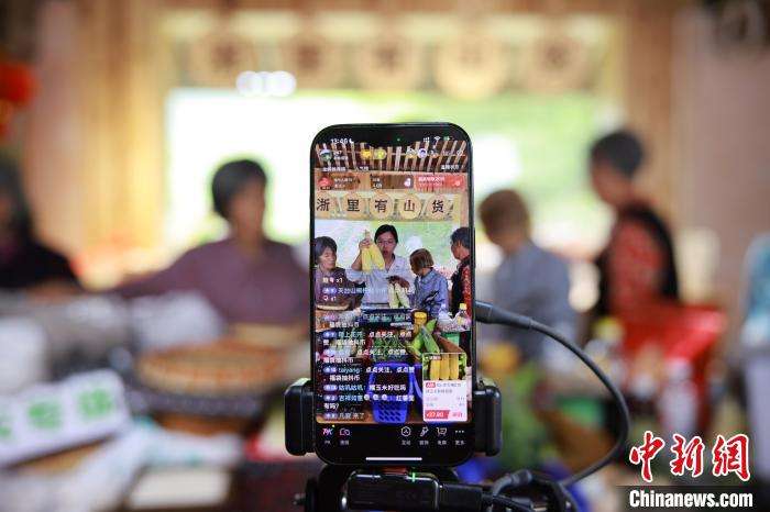 2024年3月以来,浙江台州仙居县溪港乡百花村的“浙里有山货”共富直播间直播场次达400余场,帮助周边2000多位村民销售农特产品近6万单,销售额近300万元人民币。图为6月5日,手机里的直播间画面。当日,在浙江台州仙居县溪港乡百花村的“浙里有山货”共富直播间,当地共富生活联络员陈玉琴发起助农直播,多种农特产品集中亮相,村民们主动参与推介,通过镜头为自家山货代言。