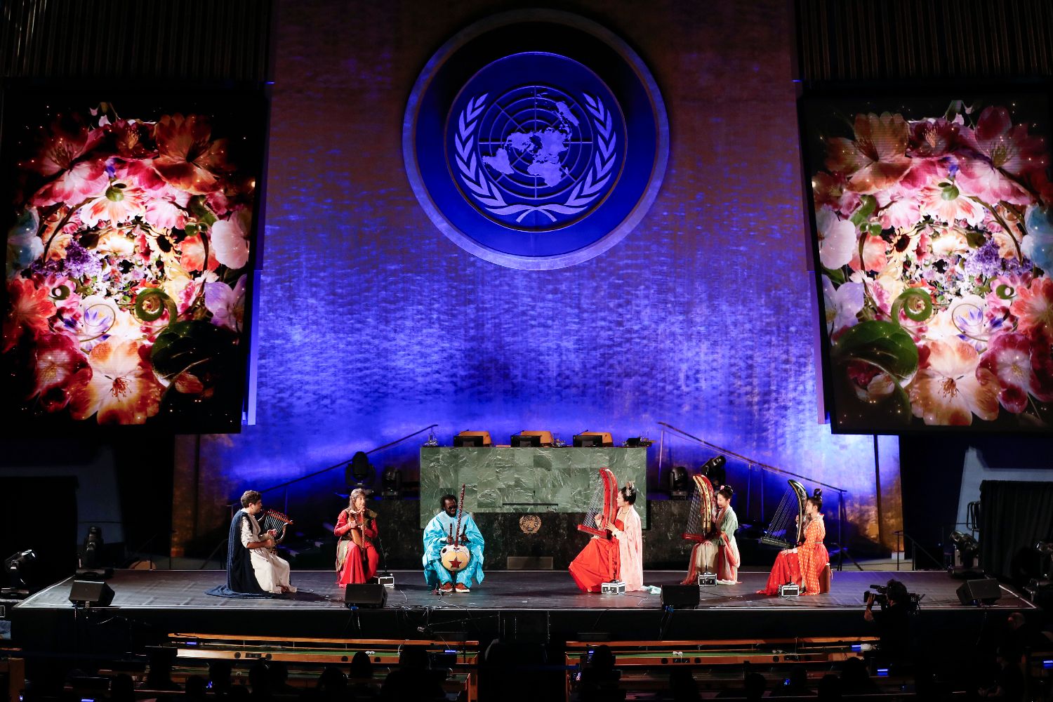 当地时间6月9日,来自中国、美国、希腊、塞内加尔的艺术家在“跨越山海的文明对话”文艺演出上表演器乐合奏《美美与共》。中新社