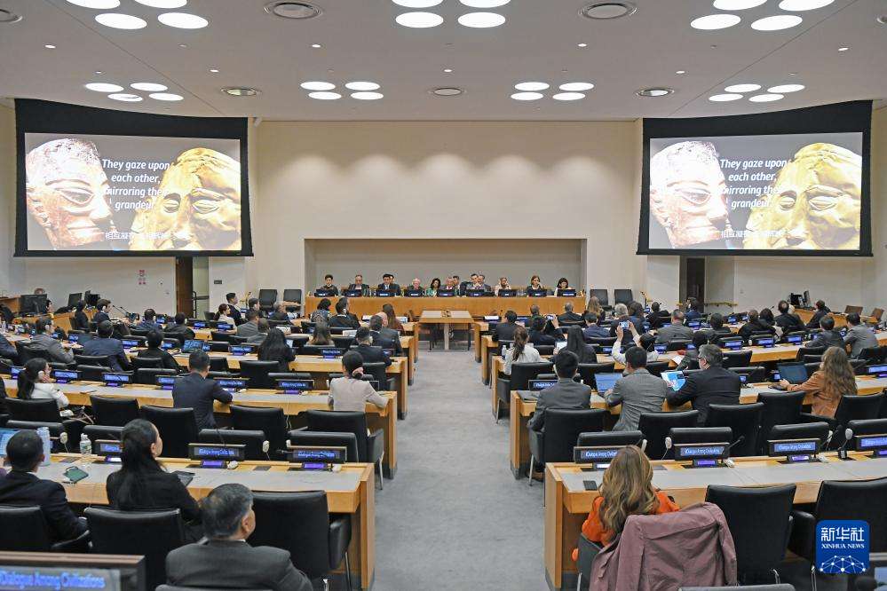 为庆祝文明对话国际日,“文明交流互鉴”全球对话系列活动9日在美国纽约联合国总部举办。图为当地时间6月9日,“庆祝文明对话国际日”主题对话会在位于纽约的联合国总部举行。新华社