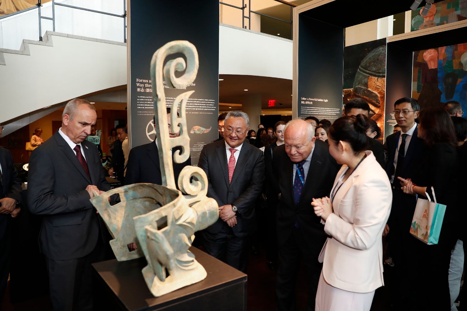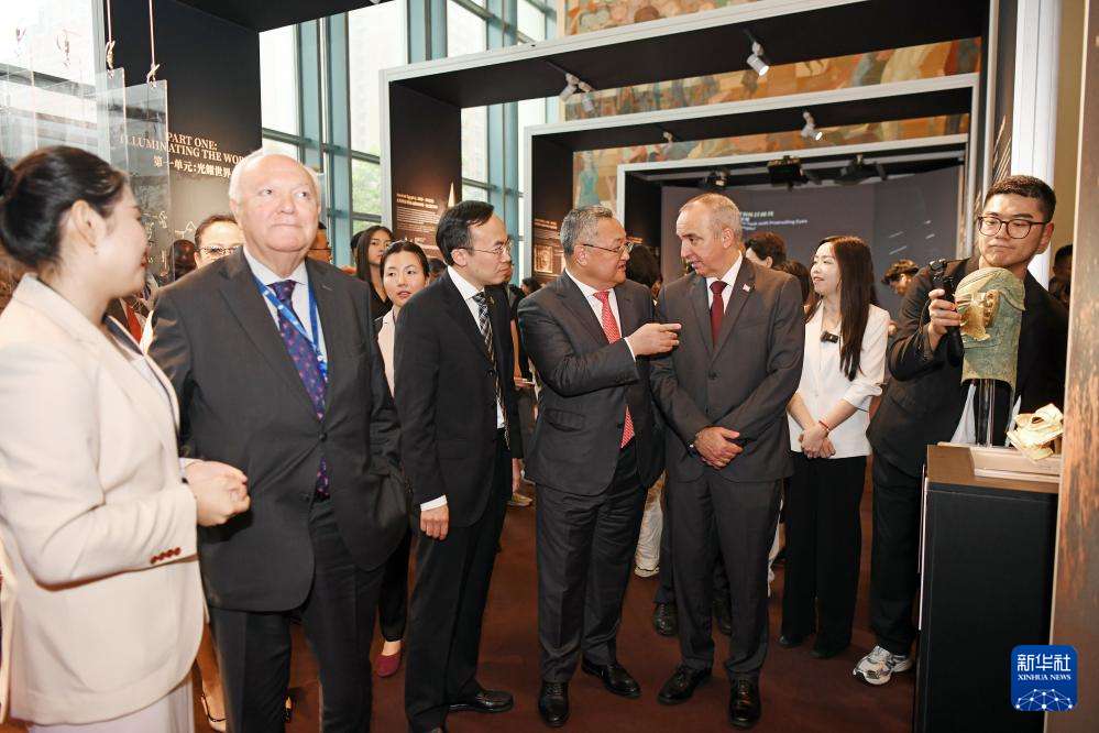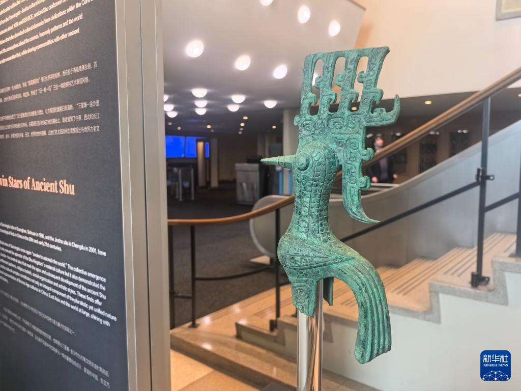 在联合国总部,嘉宾参观“太阳之光——古蜀文明与世界”展览。“太阳之光——古蜀文明与世界”展览9日在位于纽约的联合国总部揭幕,旨在以文明对话为纽带,助力推动全球文明交流互鉴。新华社