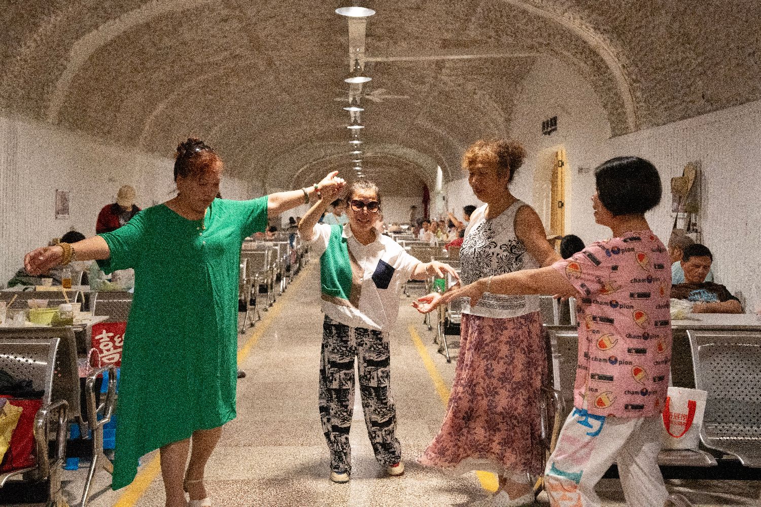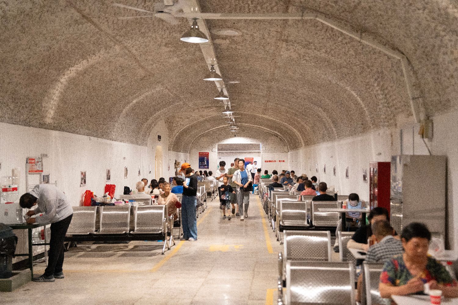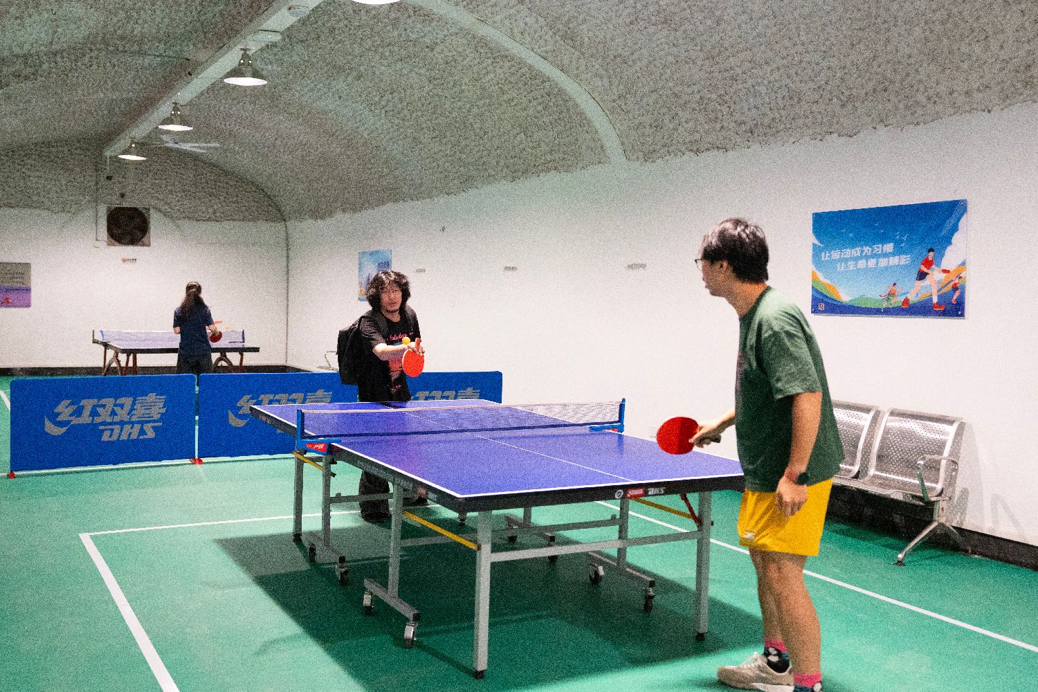 7月1日,浙江杭州开放6处防空洞供市民游客避暑纳凉,其中面积最大的四牌楼防空洞设立共享书屋、乒乓球运动区等多个功能区,为市民游客提供400个座位。图为市民在四牌楼避暑纳凉点打乒乓球。中新社