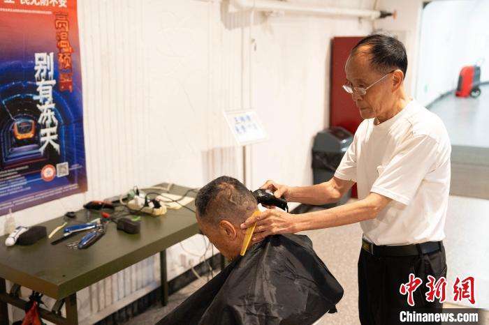 四牌楼避暑纳凉点内的免费理发服务。中新网
