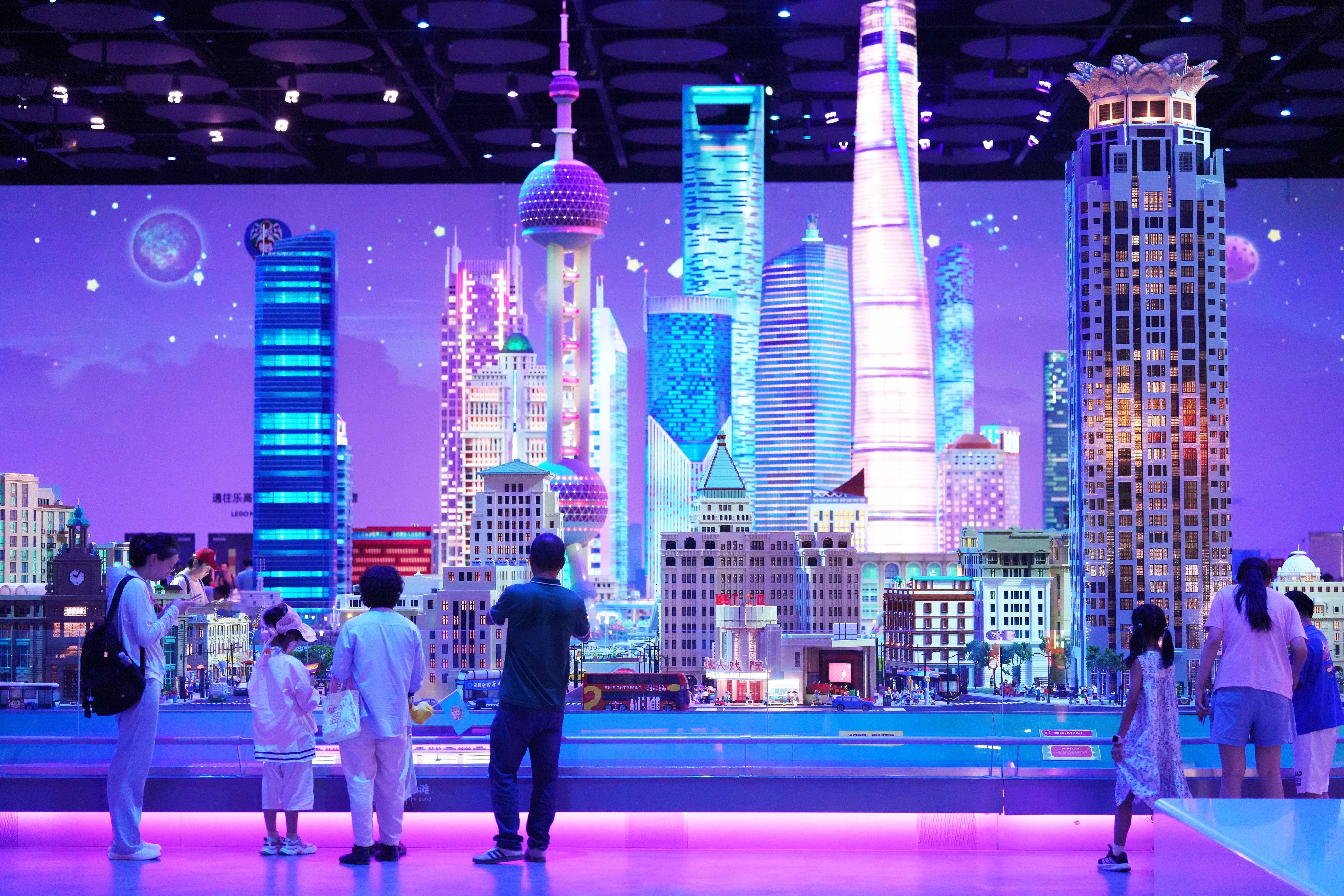 由乐高积木搭成的上海城市景观地标栩栩如生。中新社