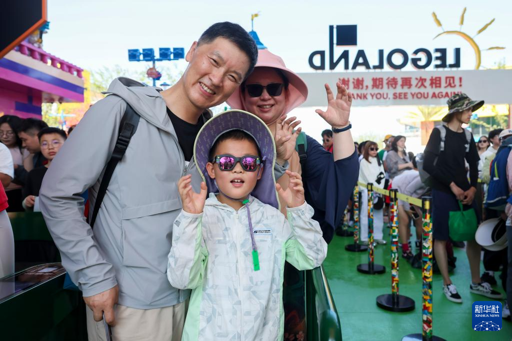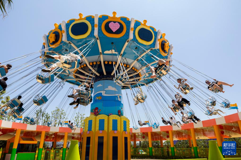 游客在上海乐高乐园体验新湖城秋千。新华社