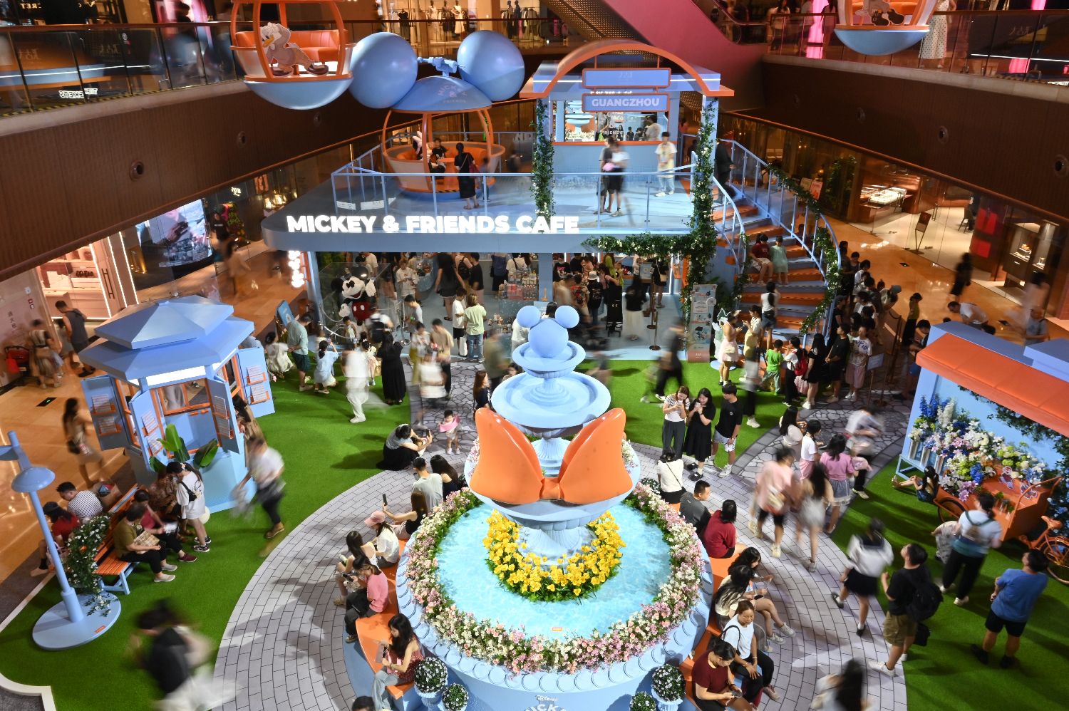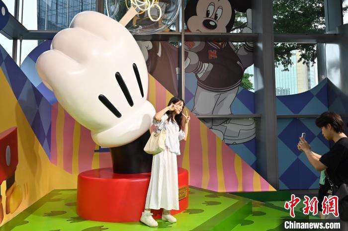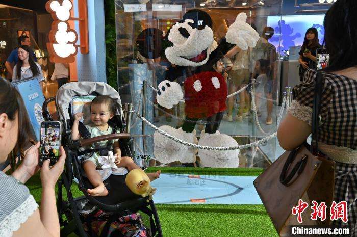 7月13日,广州市天河区一商场的迪士尼主题装置吸引游客。中新社