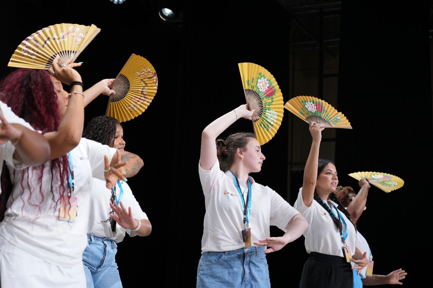在中国戏曲学院,美国青少年在中国戏曲学院体验道具折扇。中新社