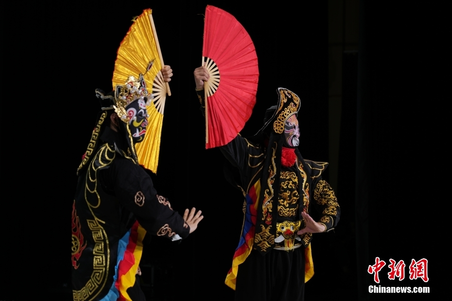在中国戏曲学院,中国戏曲学院学生表演川剧《变脸》。中新网