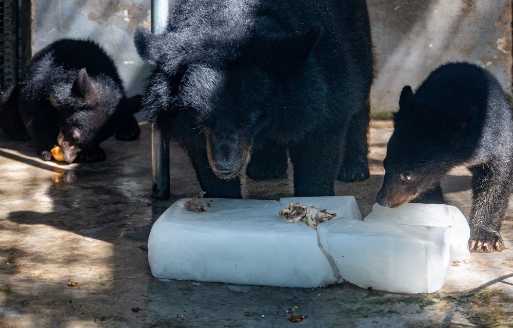 黑熊家族在品尝冰镇水果和骨头。大陆央广网