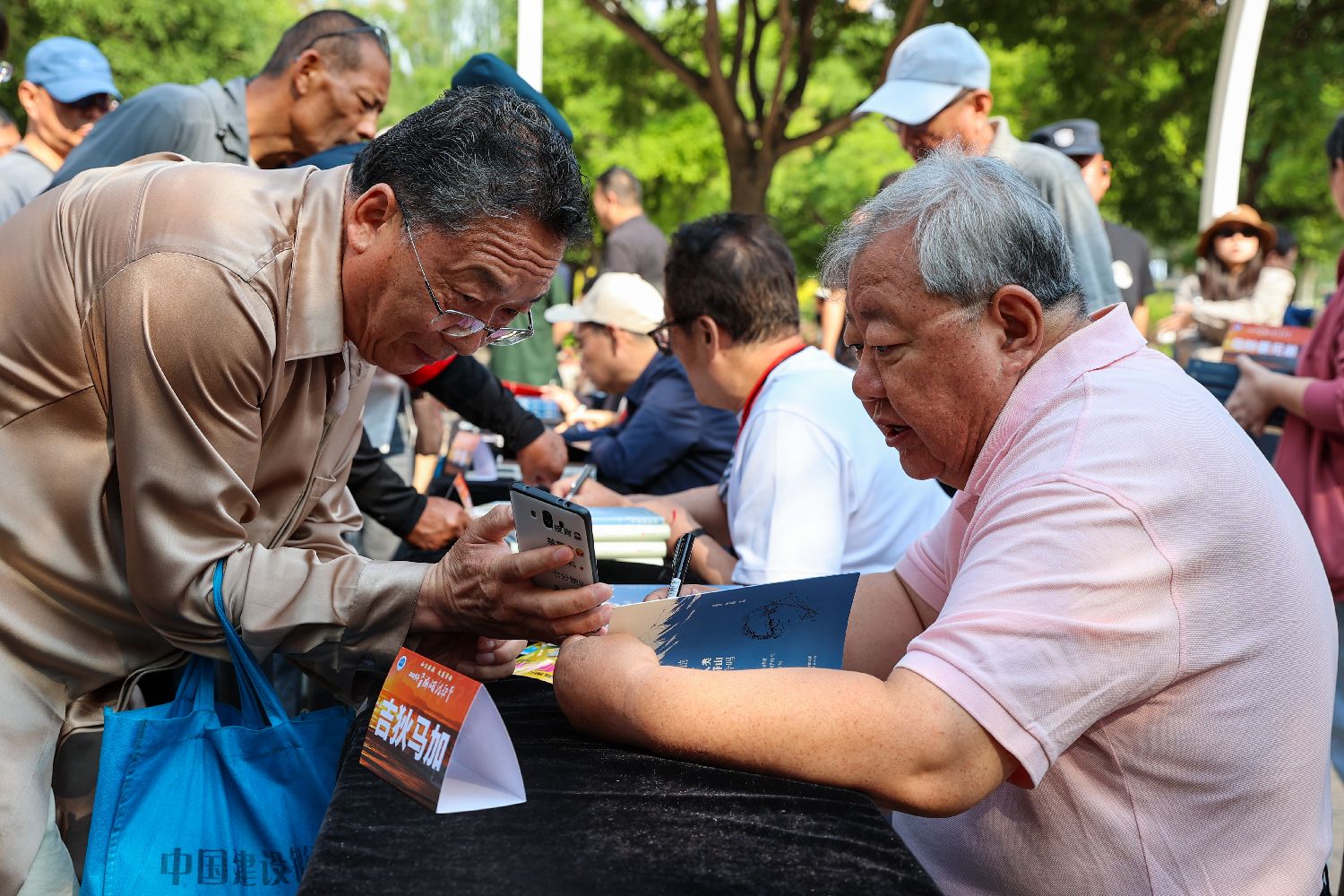 知名诗人、中国作家协会诗歌委员会主任、中国作协原副主席吉狄马加(右)参加诗集签赠活动。中新社