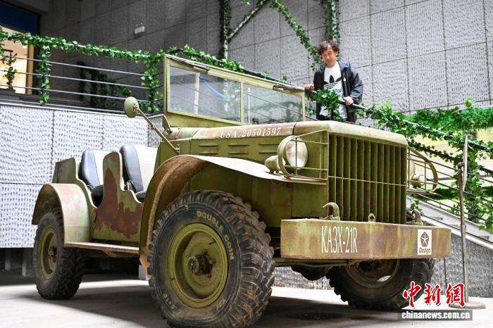 7月27日,馆外陈列的威利斯吉普车吸引观众。中新网
