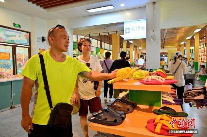 游人选购越南拖鞋。