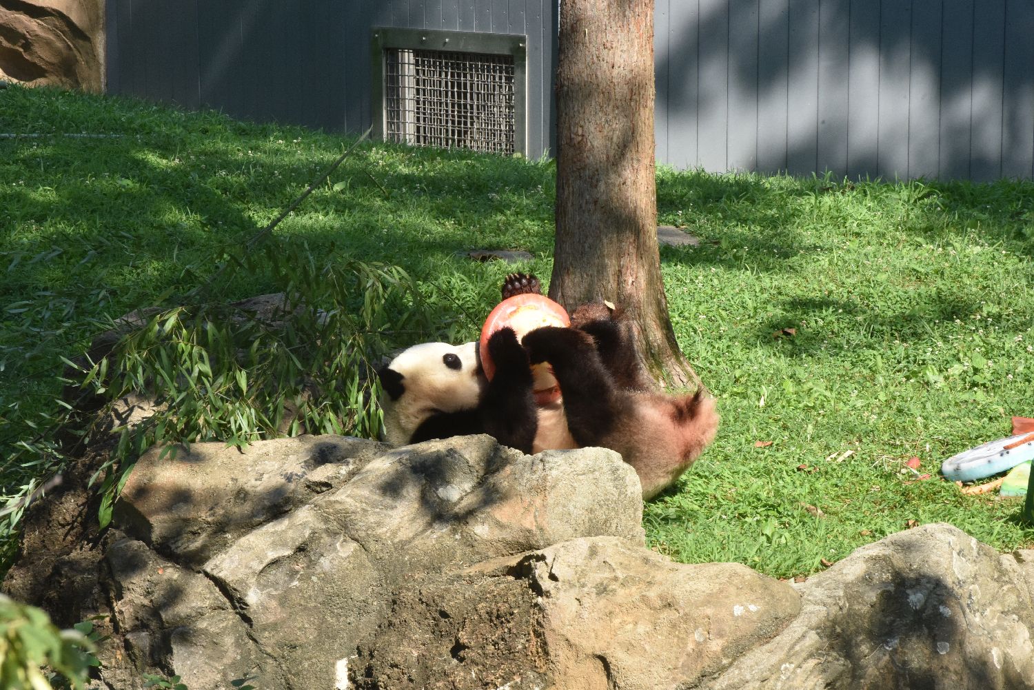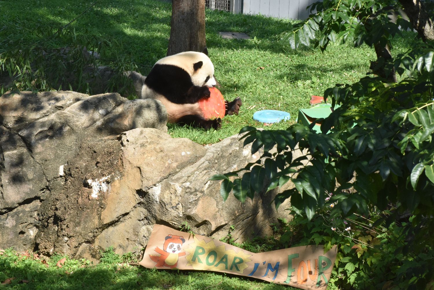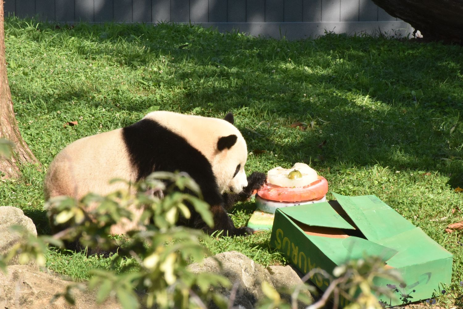 当地时间8月4日,旅居华盛顿美国国家动物园的大熊猫“宝力”迎来四周岁生日。这是“宝力”第一次在美国过生日,动物园当天给“宝力”准备了“生日蛋糕”庆生。图为大熊猫“宝力”。中新社