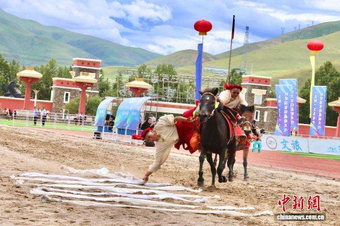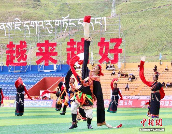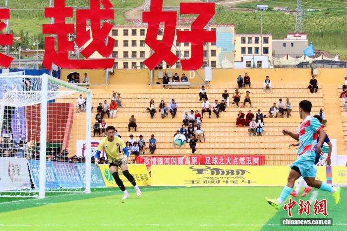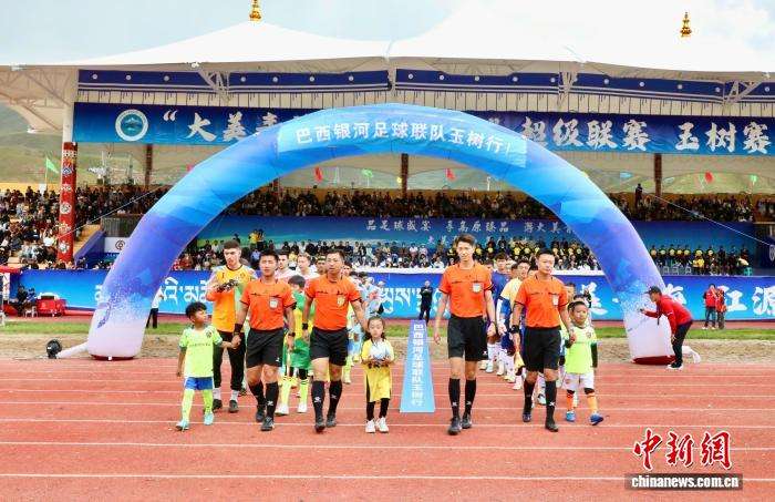 8月4日,青海玉树,2025年巴西银河足球联队玉树邀请赛打响,巴西银河足球联队首场迎战青超明星联队。经过90分钟比拼,双方以0:0的比分握手言和。后经过点球大战,青超明星联队最终以4:1胜出。在接下来的两天时间里,巴西银河足球联队还将与西藏自治区那曲市足球队、玉树牦牛队展开较量。图为开赛前的马术表演。