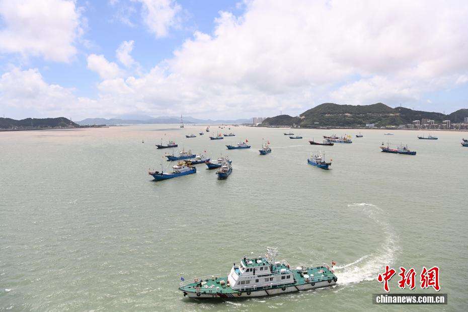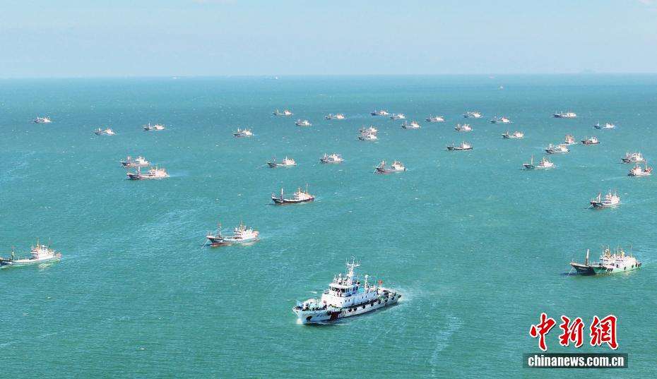 北京时间8月5日12时,东海伏季休渔期部分解禁(又称“小开渔”),浙江各地的刺网、灯光围(敷)网、笼壶类和桁杆拖虾等4种专项特许捕捞渔船结束休渔集中出港。据浙江海事局消息,当日江浙沪闽共有近万艘渔船集中出港捕捞。图为5日,浙江象山石浦渔港渔船出海。