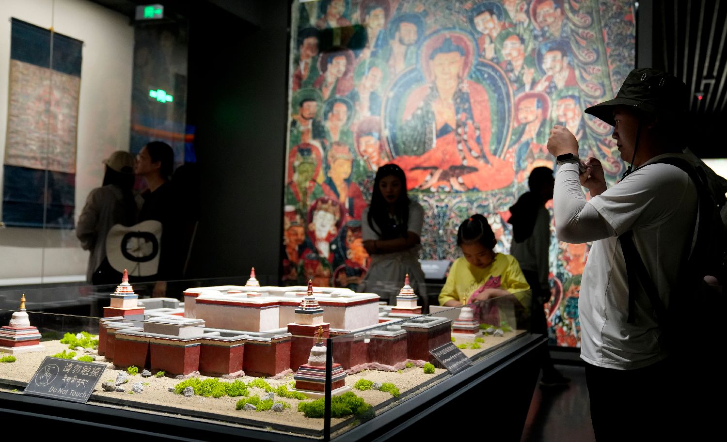 炎炎夏日,中国各地博物馆人气火热。西藏博物馆作为西藏最大的现代化综合性博物馆,也迎来参观热潮,成为市民游客喜爱的文化空间和旅游目的地。图为8月5日,游客拍摄西藏博物馆展出的托林寺模型。中新社