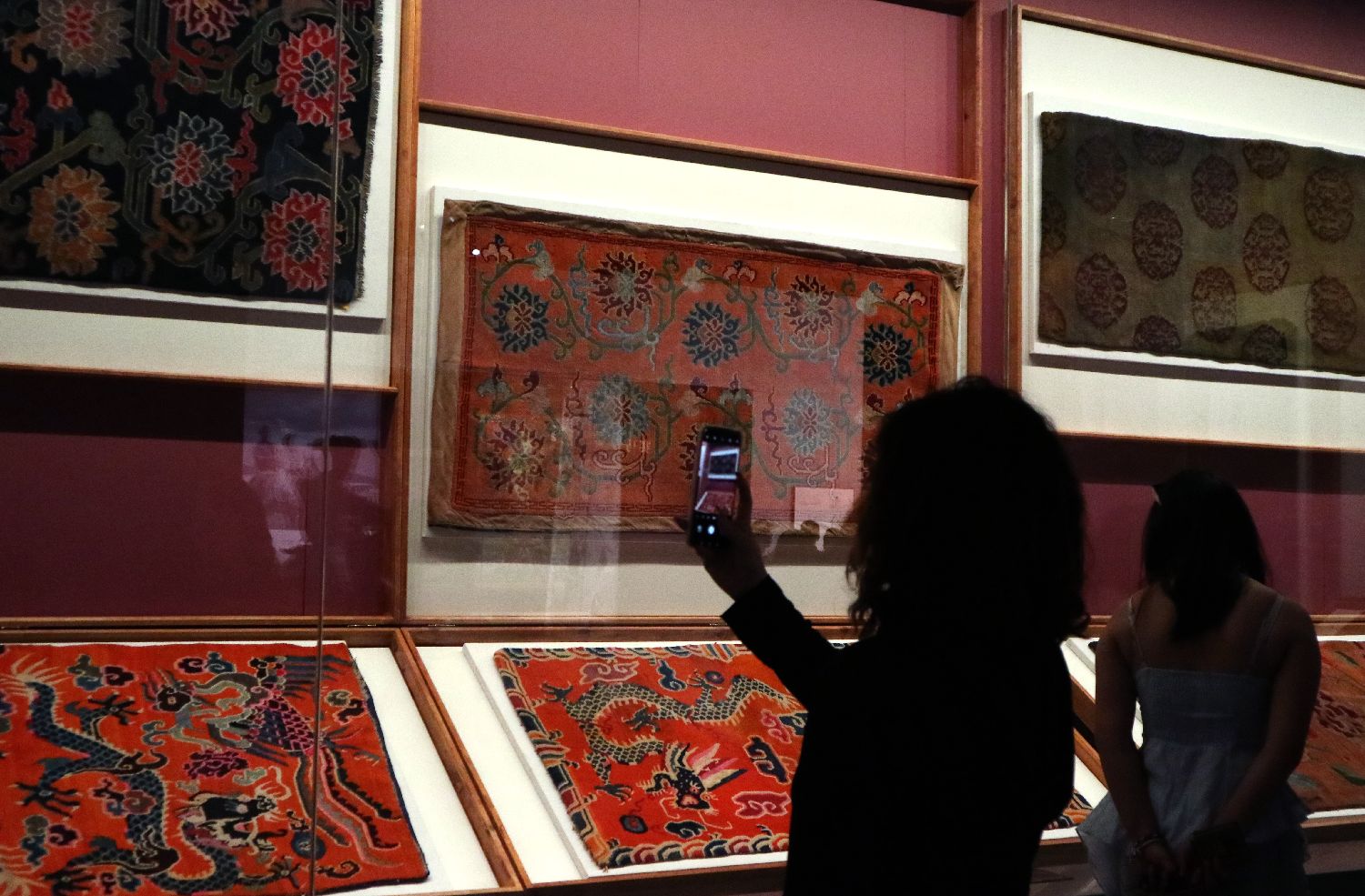 8月5日,游客参观西藏博物馆内展出的绒毯。中新社