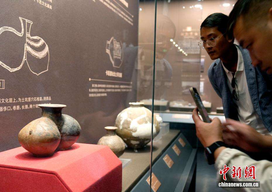 8月5日,游客拍摄西藏博物馆展出的双体陶罐。中新网