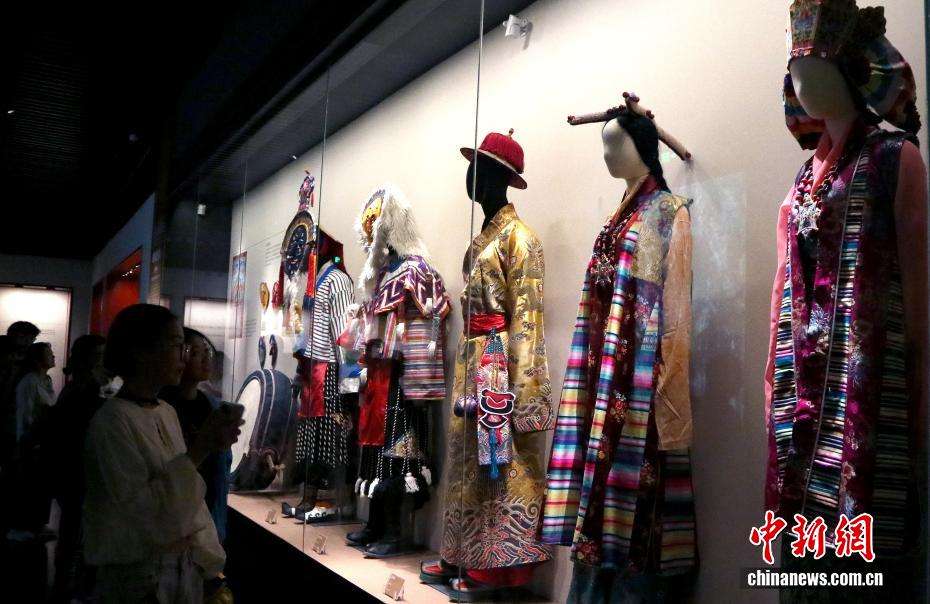 8月5日,游客参观西藏博物馆内展出的藏戏服饰。中新网