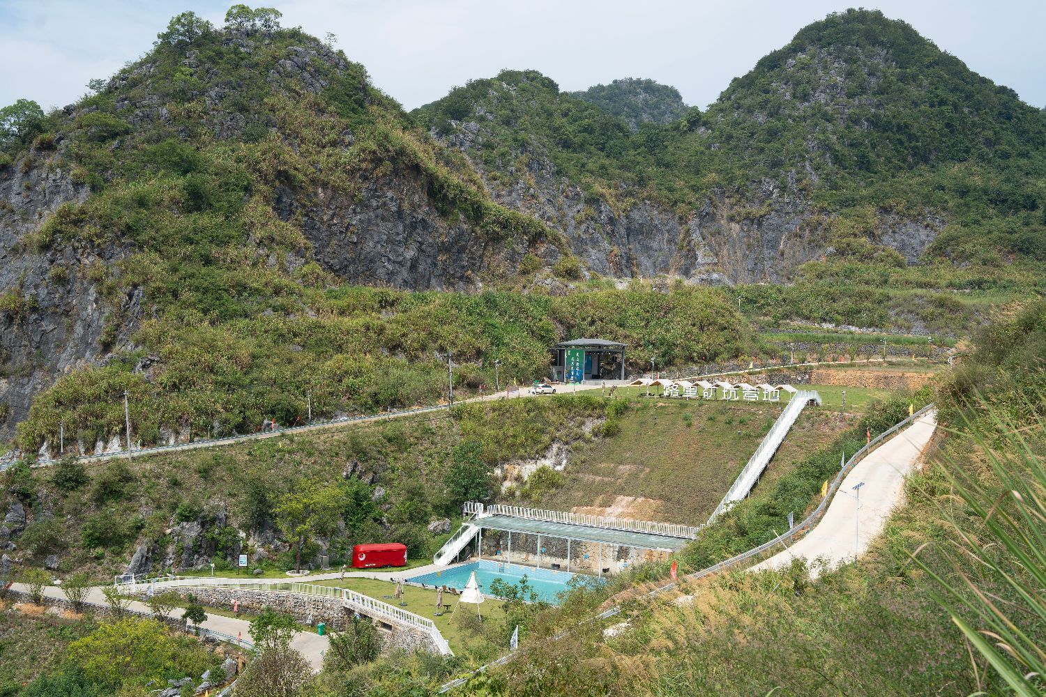 路里坑村将矿山改造为露营地和游泳池。中新社