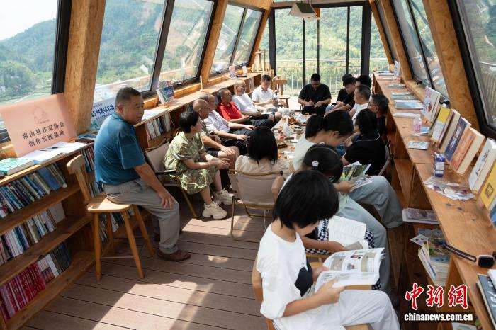 8月10日,民众在石灰窑改建而成的“窑书房”读书交流。中新网