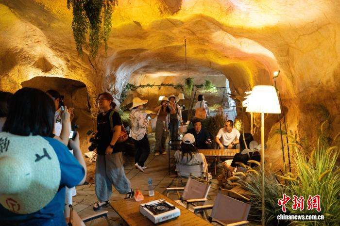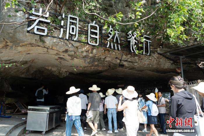 8月10日,当地将岩洞改造成的餐厅吸引游客拍照打卡。中新网