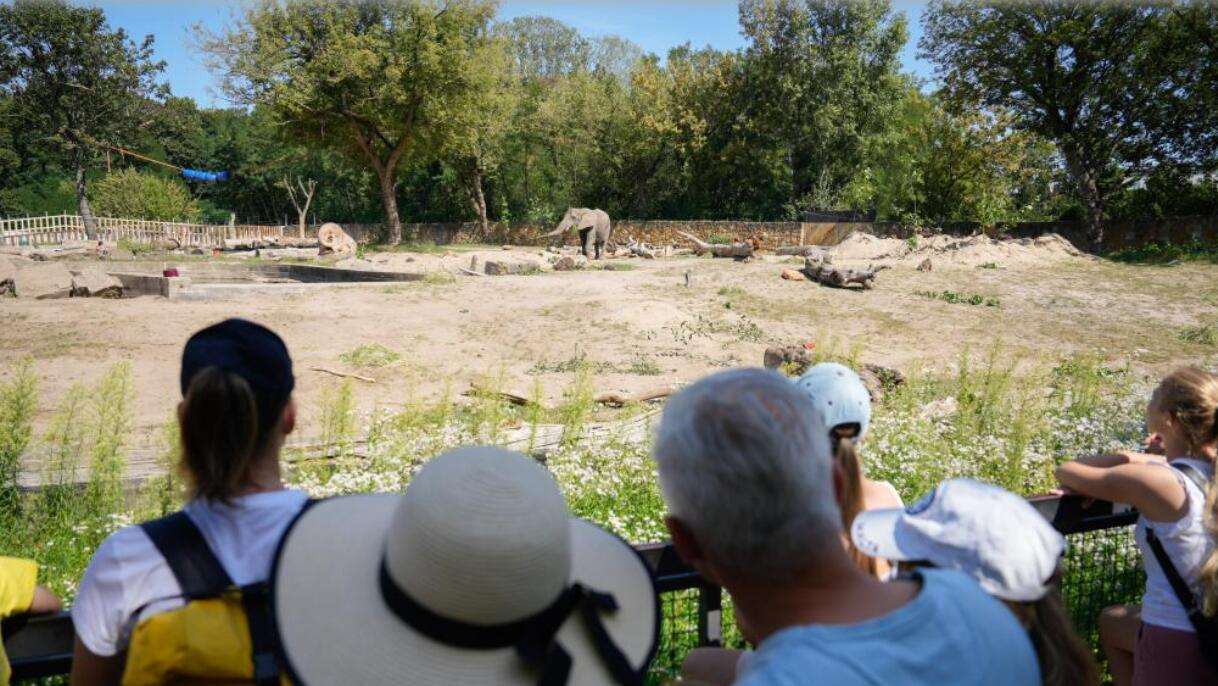 游客在波兰华沙动物园观看大象。当日,华沙动物园大象馆举办与饲养员会面、知识竞赛等活动,为游客普及大象保护的相关知识。新华社