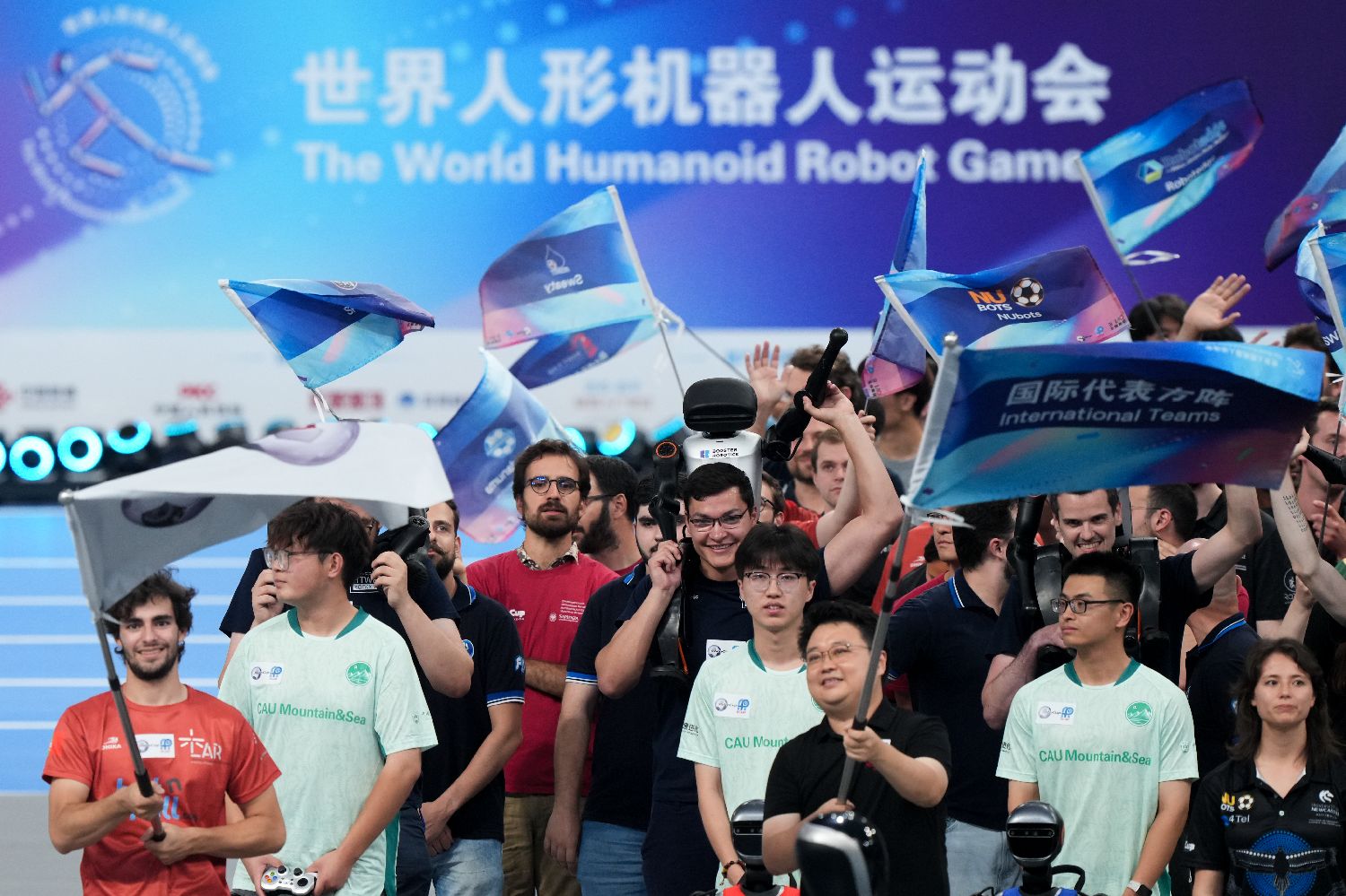 8月14日,2025世界人形机器人运动会在北京中国国家速滑馆“冰丝带”开幕。赛事周期为8月15日至17日,共计3天。据介绍,本次赛事参赛规模创纪录,经审核,最终确定280支队伍参赛,涵盖192支高校赛队及88支企业赛队。高校赛队包含清华大学、北京大学、上海交通大学、武汉大学、华中科技大学、山东大学、湖南大学、北京科技大学、北京信息科技大学等高校的队伍,还有北京人大附中、北京十一学校、中央民族大学附中等3支中学队伍参与其中。国际队伍来自美国、德国、澳大利亚、巴西、日本等15个国家。2025世界人形机器人运动会整体参赛阵容强大,涵盖127个品牌,汇聚500余台人形机器人。图为开幕式前,一台头挂LABUBU的人形机器人巡游场馆。中新社