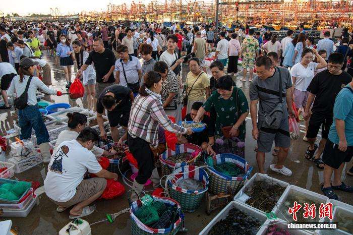 8月17日,民众在电建渔港码头购买海鲜。中新网