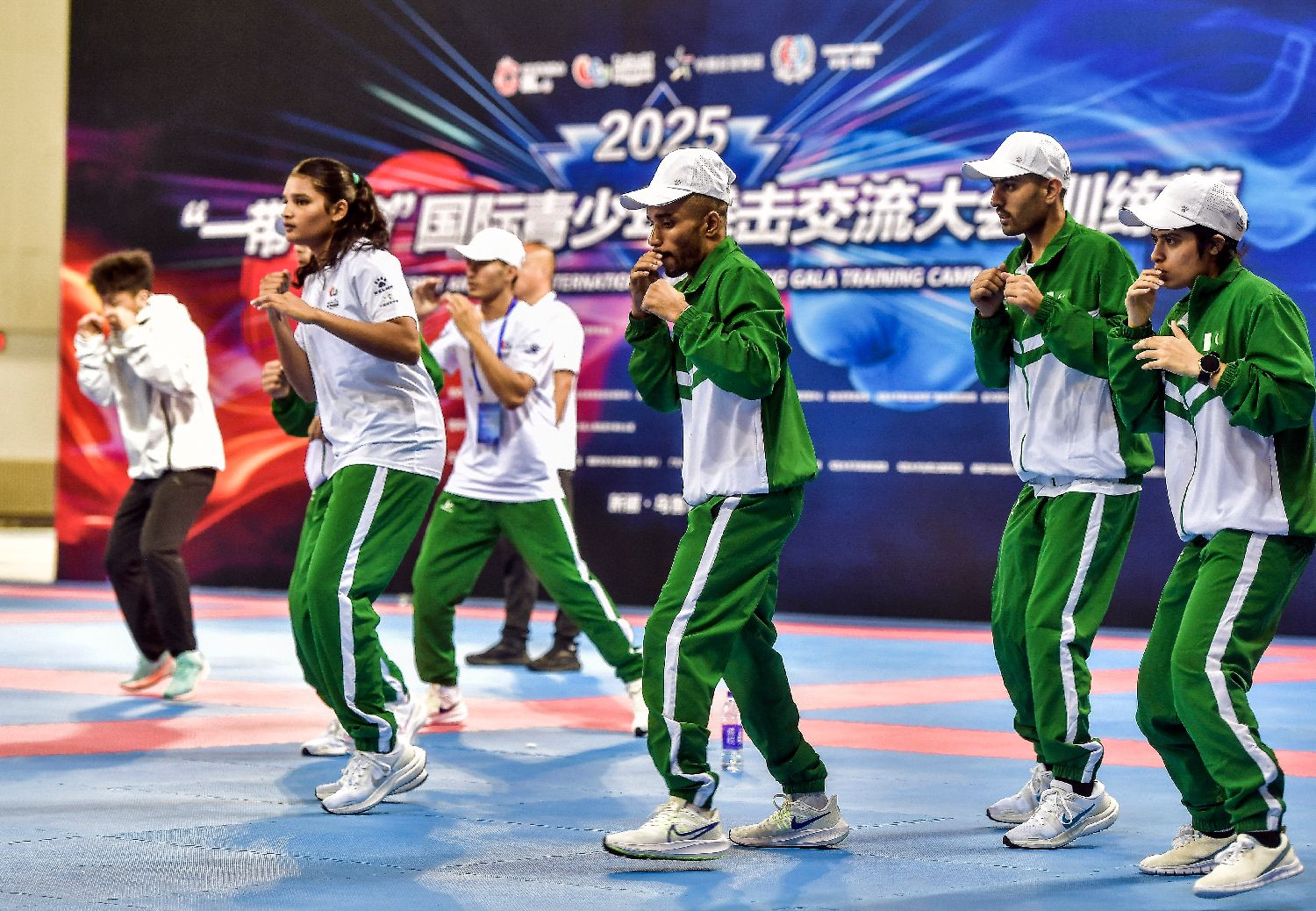 8月18日,新疆乌鲁木齐,2025“一带一路”国际青少年拳击交流大会训练营开营仪式在新疆冬季运动训练中心举行。中新网