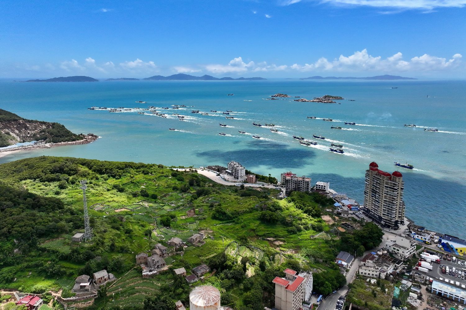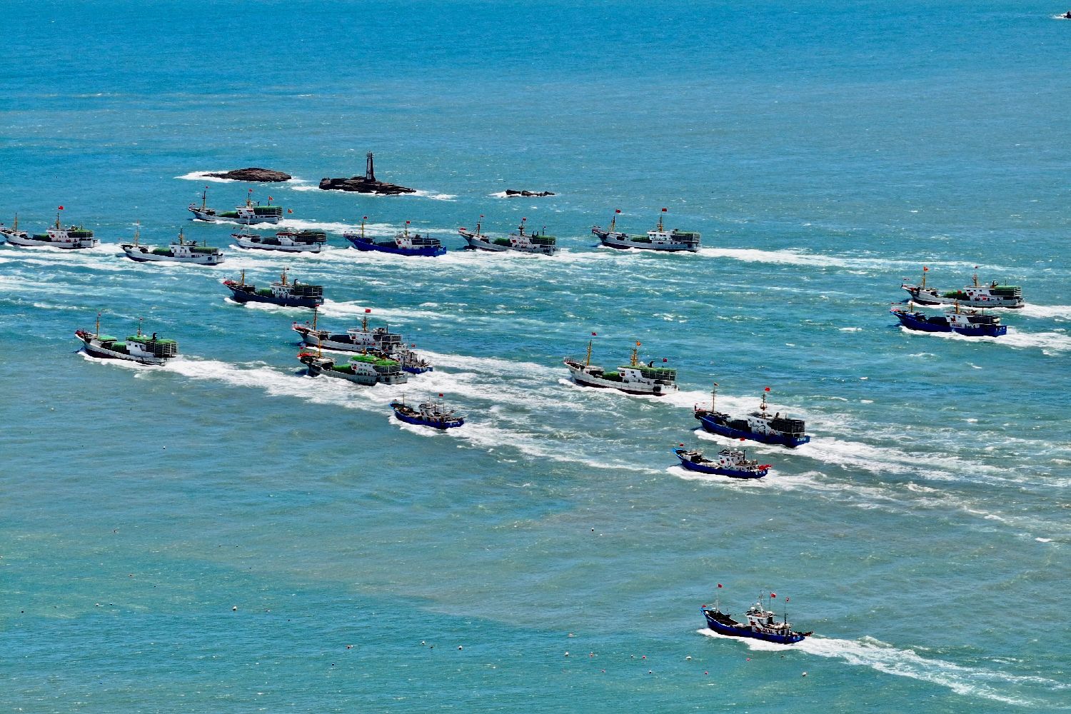 北京时间8月16日12时,福建省部分海域结束为期三个半月的伏季休渔期,近千艘渔轮分别从黄岐、苔菉两个中心渔港驶向东海,开启新一轮出海捕鱼作业。图为当日在福建省福州市连江县黄岐国家中心渔港,渔船陆续出海。(无人机照片)中新社