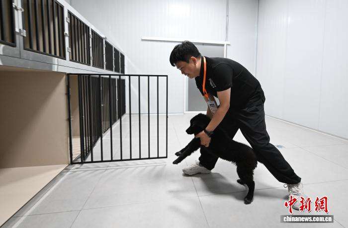 8月28日,工作人员照看宠物狗。中新网
