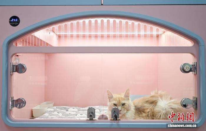 8月28日,宠物猫在智能控温房内休息。中新网