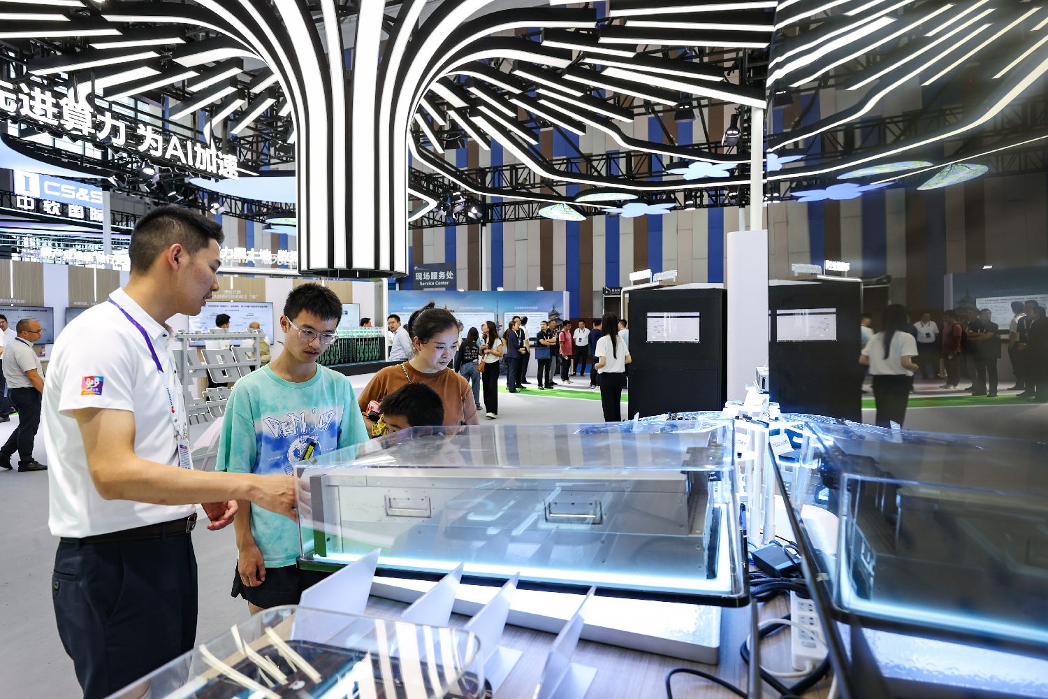 8月28日,以“数聚产业动能智启发展新篇”为主题的2025中国国际大数据产业博览会在贵州省贵阳市开幕。图为华为800IA2推理服务器吸引参观者。中新社