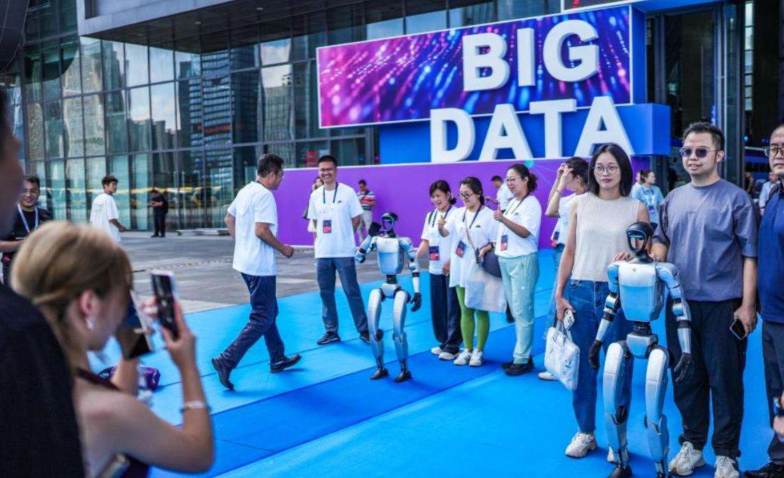 人们在2025中国国际大数据产业博览会会场外拍照。新华社