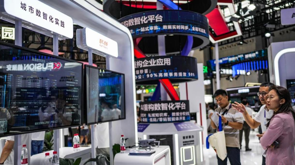 参展商与观展者在2025中国国际大数据产业博览会会场交流城市数智化实践情况。新华社