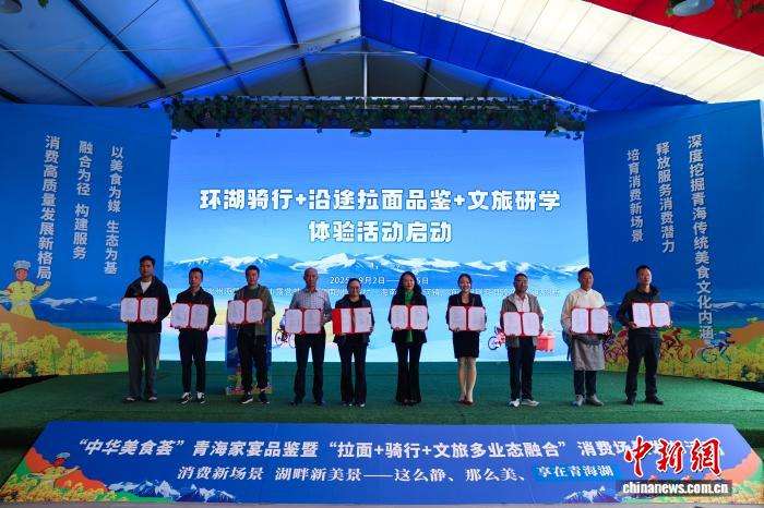 现场签订“青海拉面+环湖骑行+文旅”战略合作协议书。