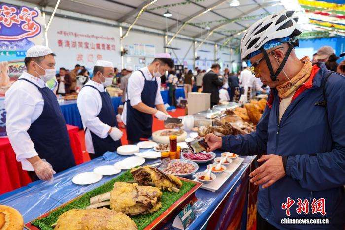 游客拍照记录青海家宴。