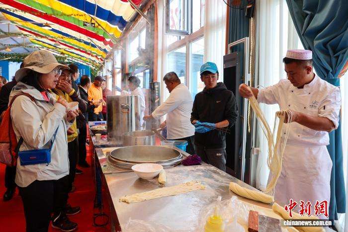 游客品尝青海拉面。