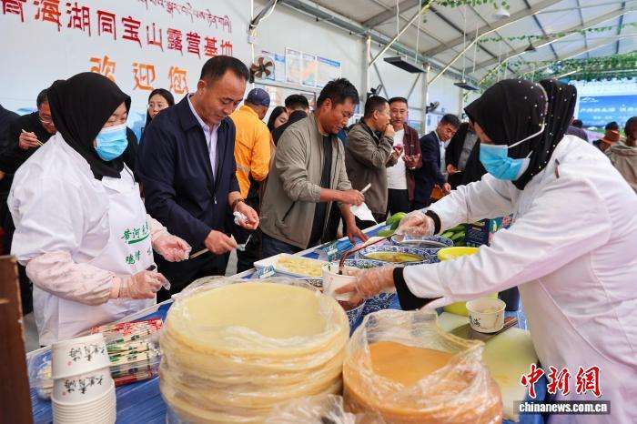 9月2日,“中华美食荟”青海家宴品鉴暨“拉面+骑行+文旅多业态融合”消费场景发布活动在青海省海北藏族自治州海晏县同宝山露营基地启幕。此次活动以“消费新场景 湖畔新美景——这么静,那么美,享在青海湖”为主题,以美食为窗口、生态为底色、融合为路径,深度呈现了青海服务消费的创新实践与丰硕成果。图为活动现场。