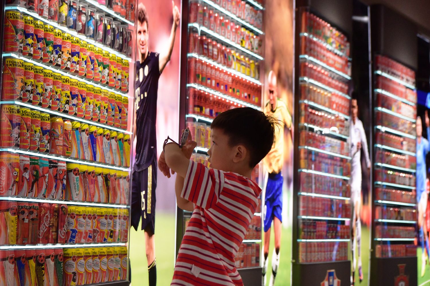 9月6日,小朋友在可乐罐收藏馆观赏展品。中新网