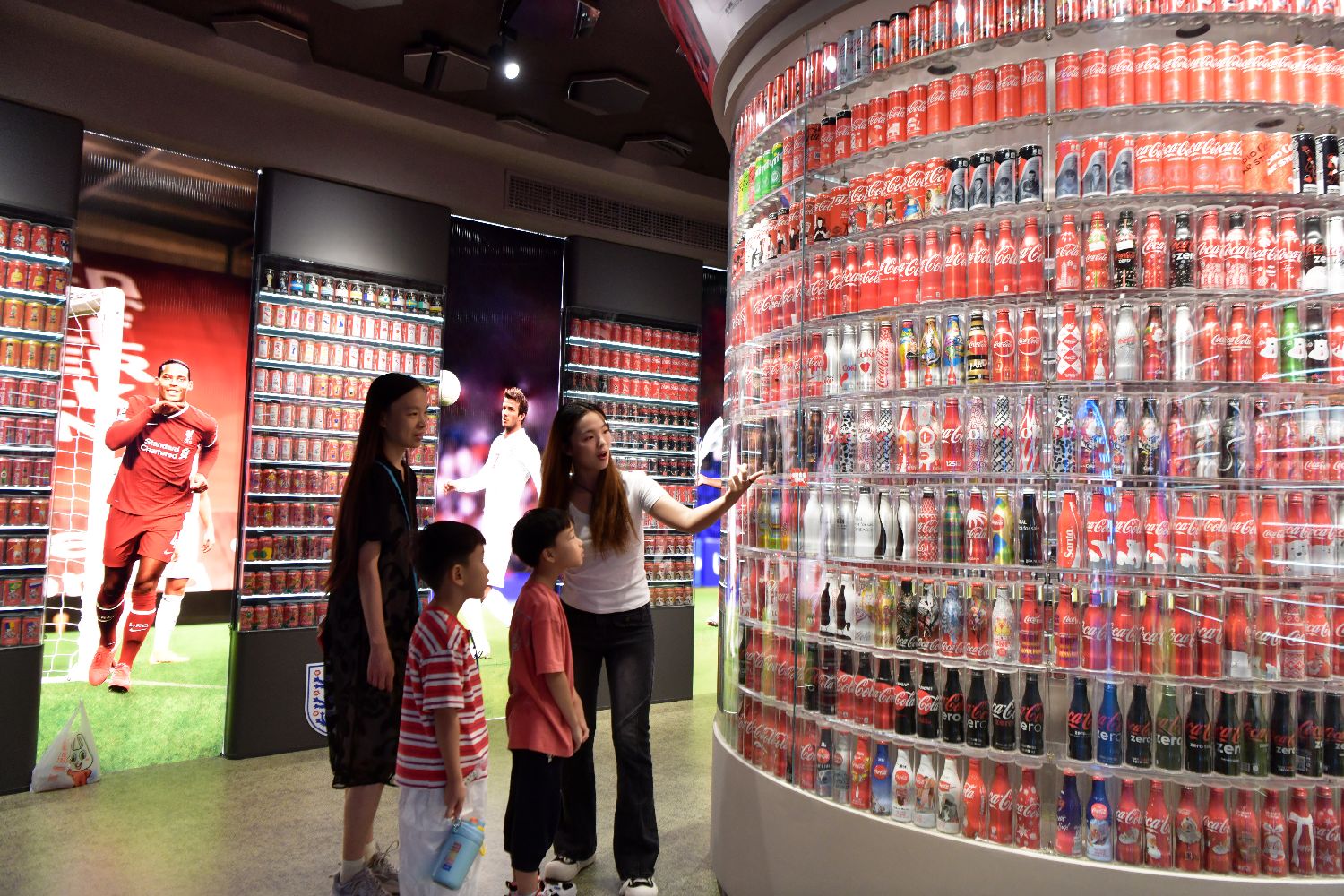 近日,位于河北石家庄的“可乐博物馆”正式营业,该馆汇集了全球200余个国家的可乐文化藏品,展品近1.5万件,涵盖了不同时期、不同地域、不同风格的可乐罐及相关文化展品。图为9月6日,小朋友在可乐罐收藏馆观赏展品。中新社