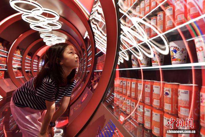 9月6日,参观者在可乐罐收藏馆拍照打卡。中新社