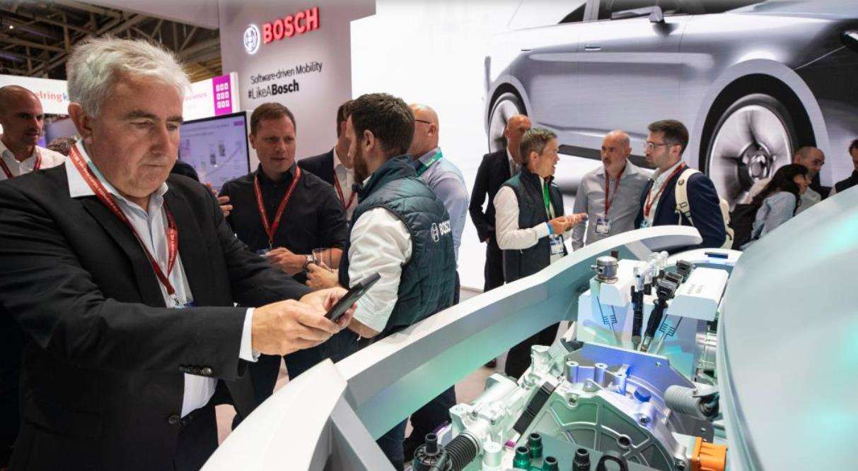 9月9日,一名男子在德国慕尼黑国际车展的博世展台参观拍照。