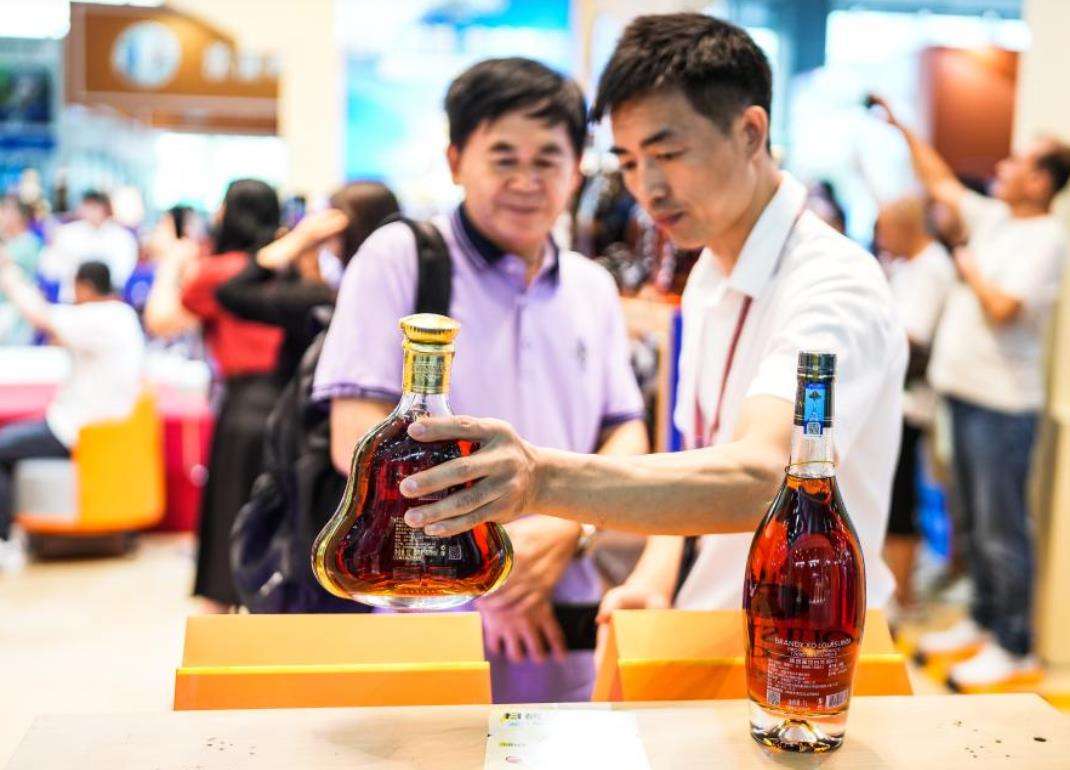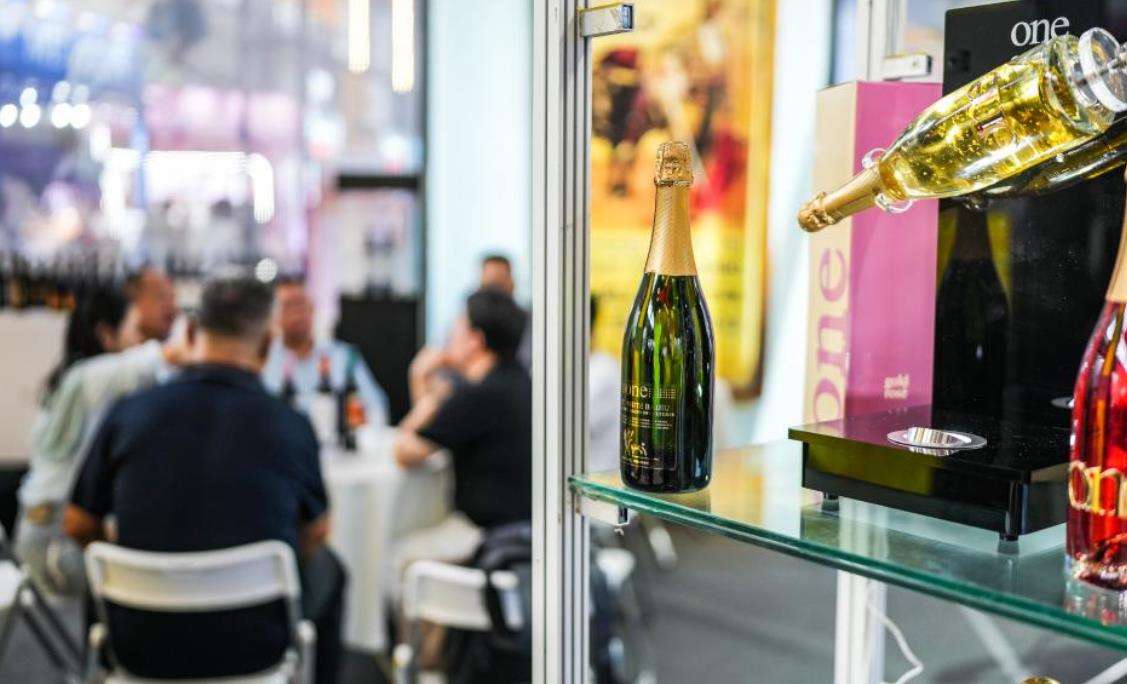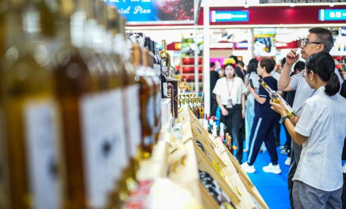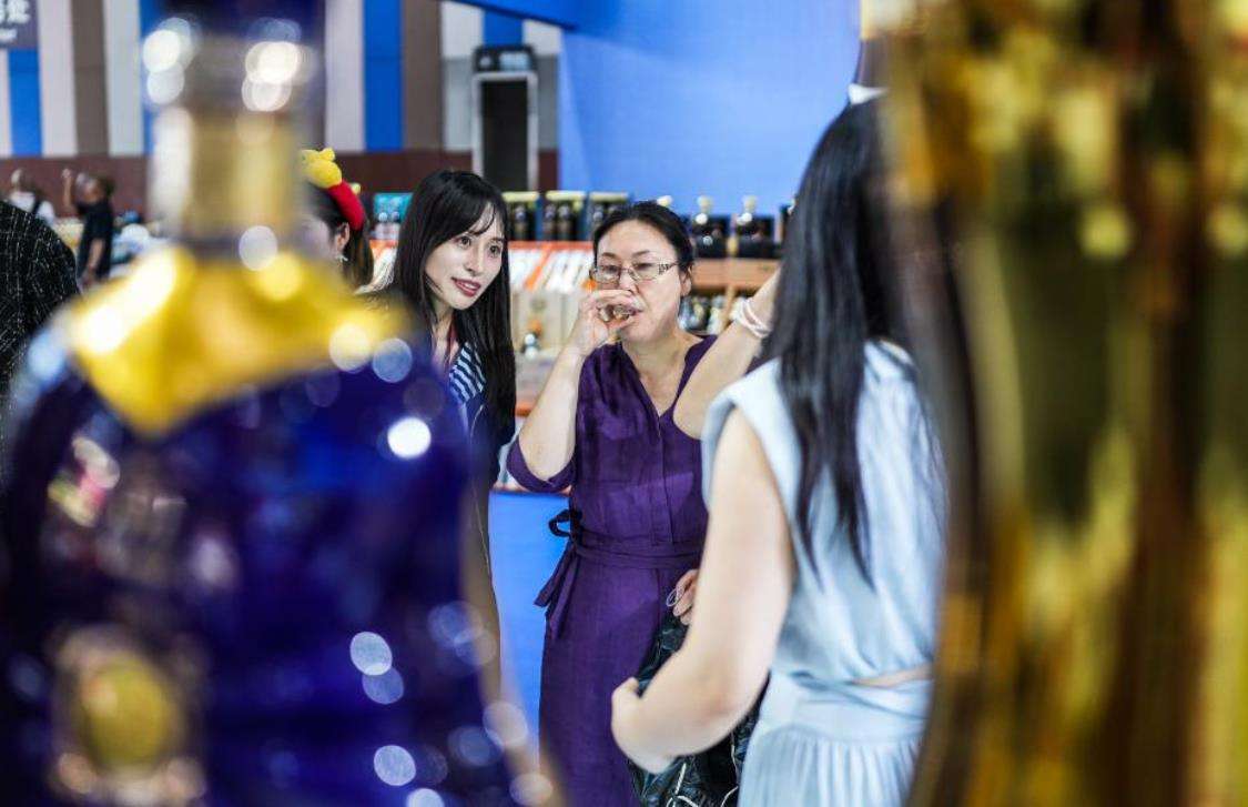 9月9日,消费者在酒博会现场品酒。