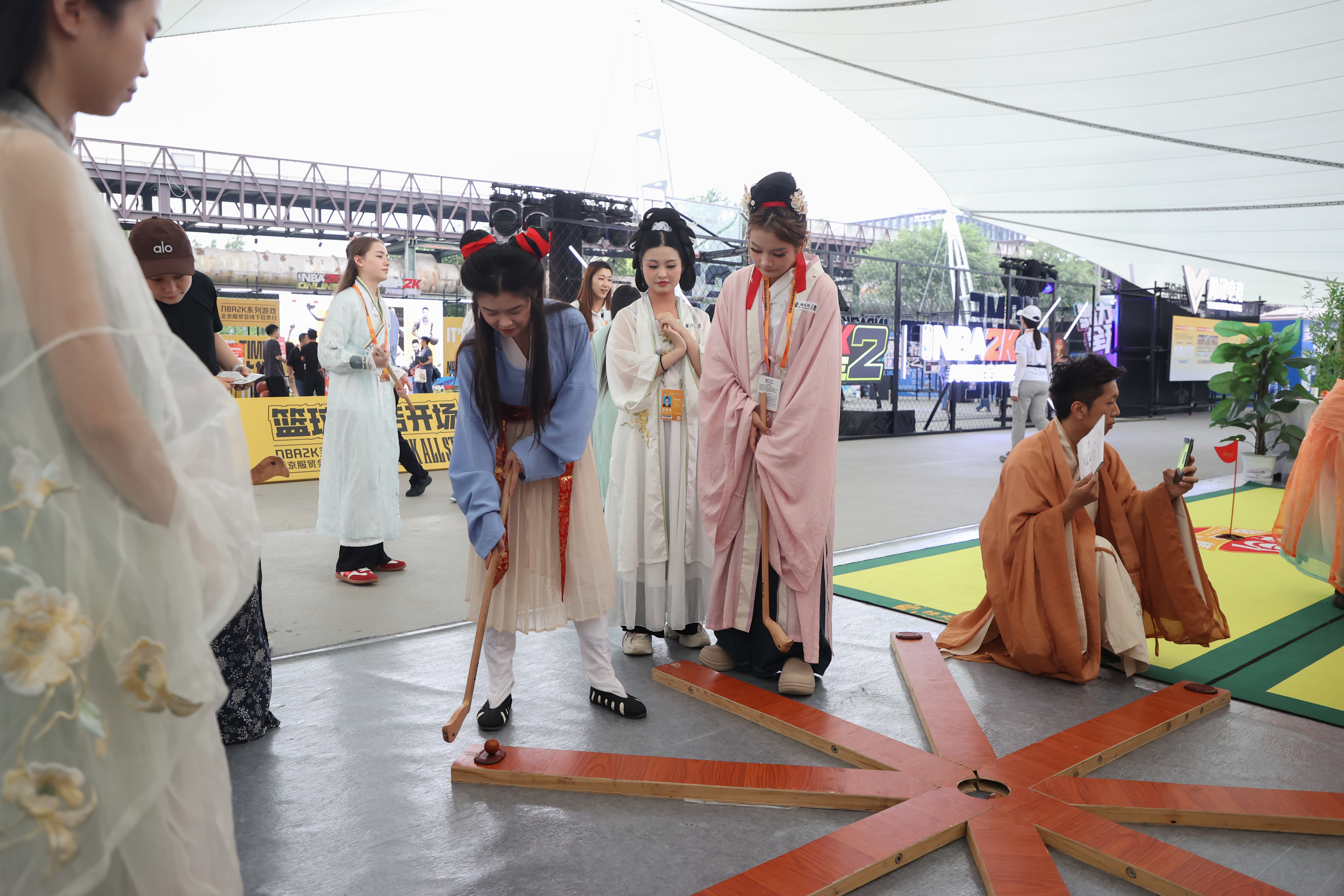 9月10日,2025年中国国际服务贸易交易会在北京首钢园开幕。图为文旅服务区域的工作人员演示中国传统体育运动“捶丸”。中新社