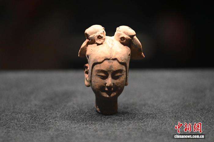 展览展陈的中国社会科学院考古研究所馆藏洛阳出土北魏 (386-534年)的藏品影塑头像。中新网