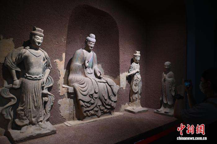 展览展陈的云冈石窟第20窟复制窟。中新网