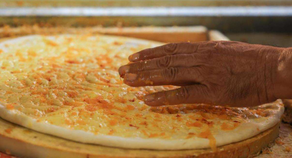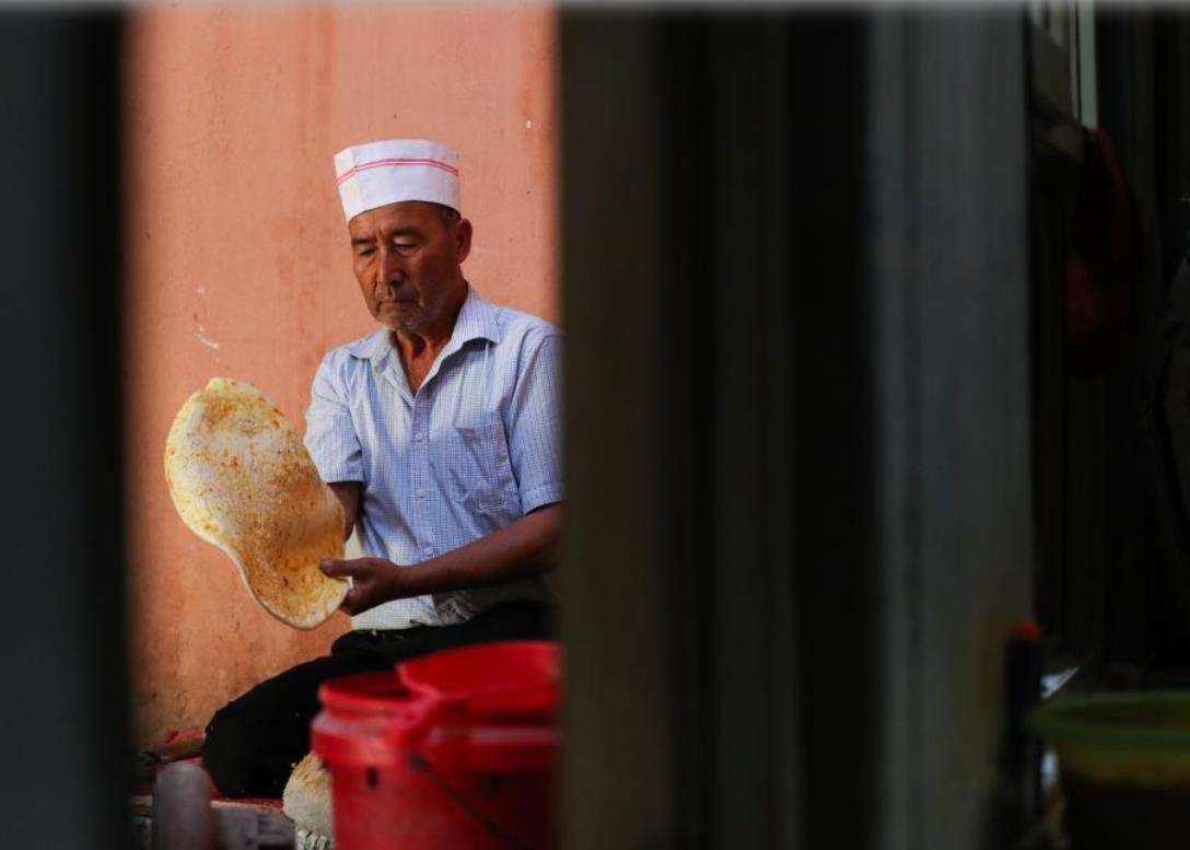 2020年,热西提曾作为展演嘉宾,远赴广州参加第一届全国技能大赛“中华绝技”的现场展演,他的打馕技艺赢得阵阵喝彩。自此,热西提大力推广库车大馕,让更多的人能够通过库车大馕,更加深入了解新疆。 从库车老街的馕店,到乌鲁木齐大巴扎的馕主题展馆,馕正以更鲜活的姿态走进大众视野:馕的造型和口味多种多样,是游客必带的伴手礼;可爱的馕造型文创,以及用馕做容器的咖啡、酸奶成了年轻游客们追捧的“网红搭配”。 图为热西提往馕坯上撒放香料。