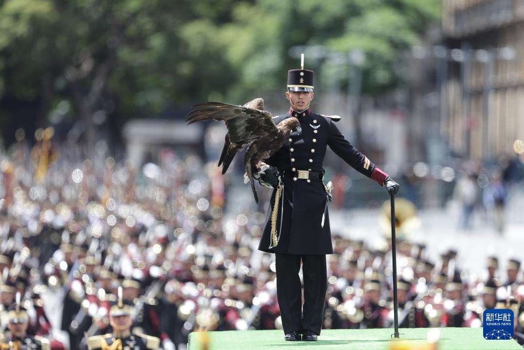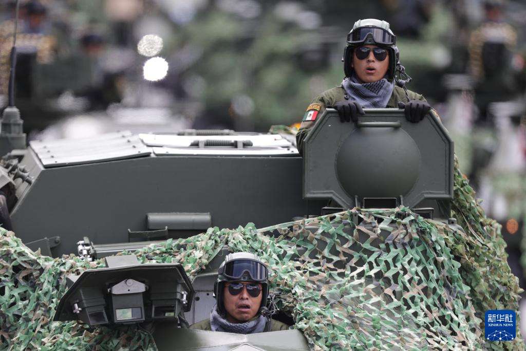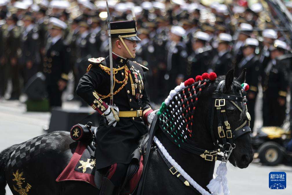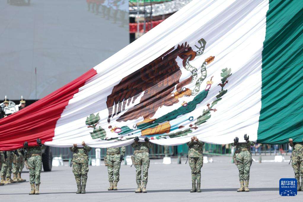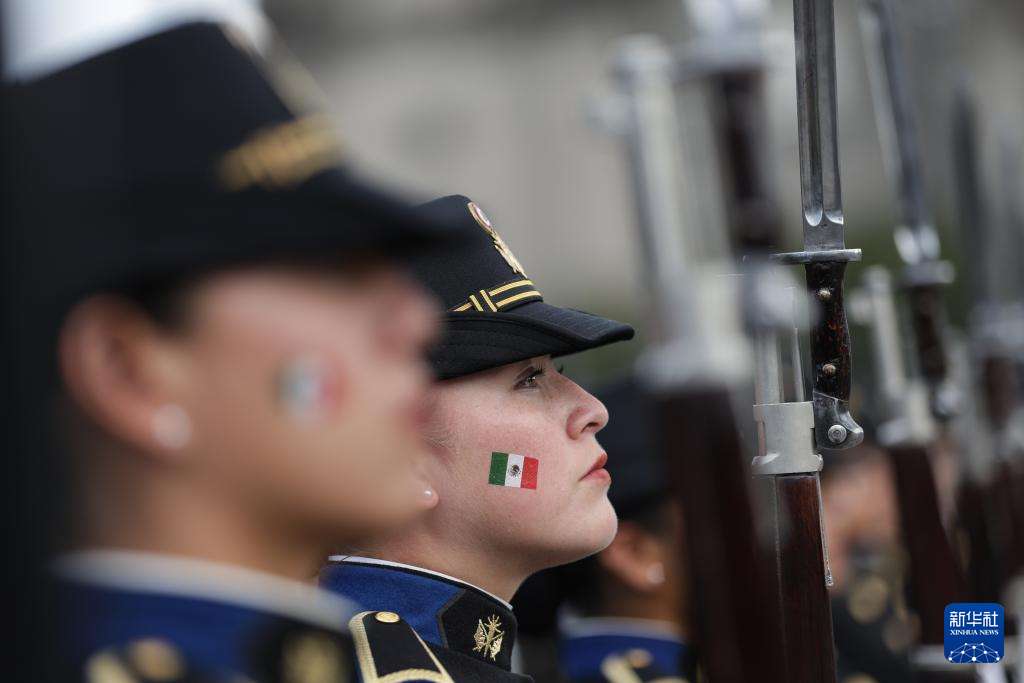 9月16日,在墨西哥首都墨西哥城宪法广场,士兵参加独立日阅兵。
