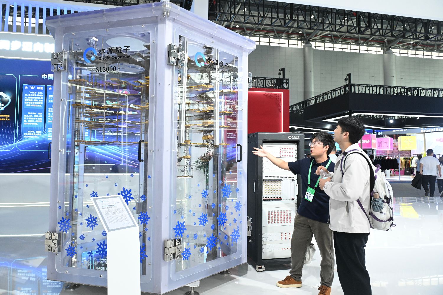 工作人员向观众介绍第四代本源悟空量子计算机。中新社